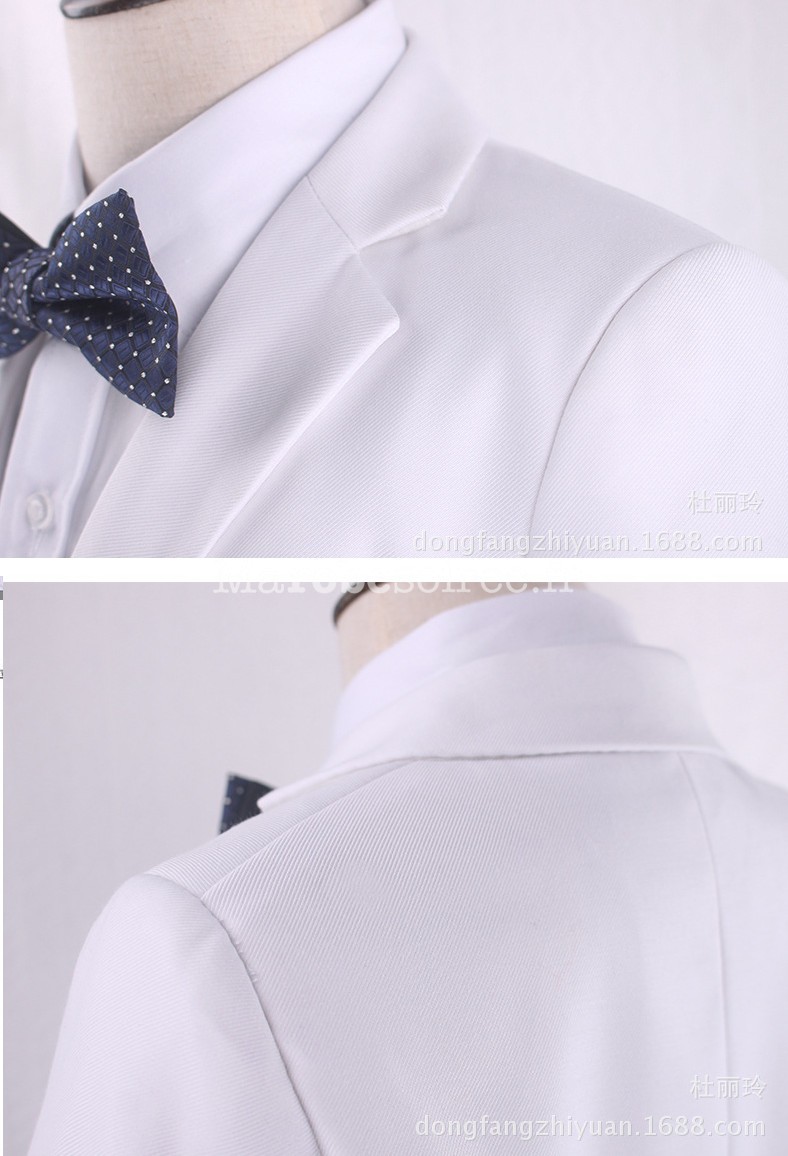 Disponible en plusieurs tailles, il est composé d'un pantalon de costume, d'un gilet à boutons, d'une chemise, d'une veste assortie au pantalon et d'une cravate (la couleur et le motif selon le stock) pour rappeler l'ensemble.