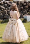 Jolie robe enfant longue avec le haut en satin et jupe vaporeuse en tulle.