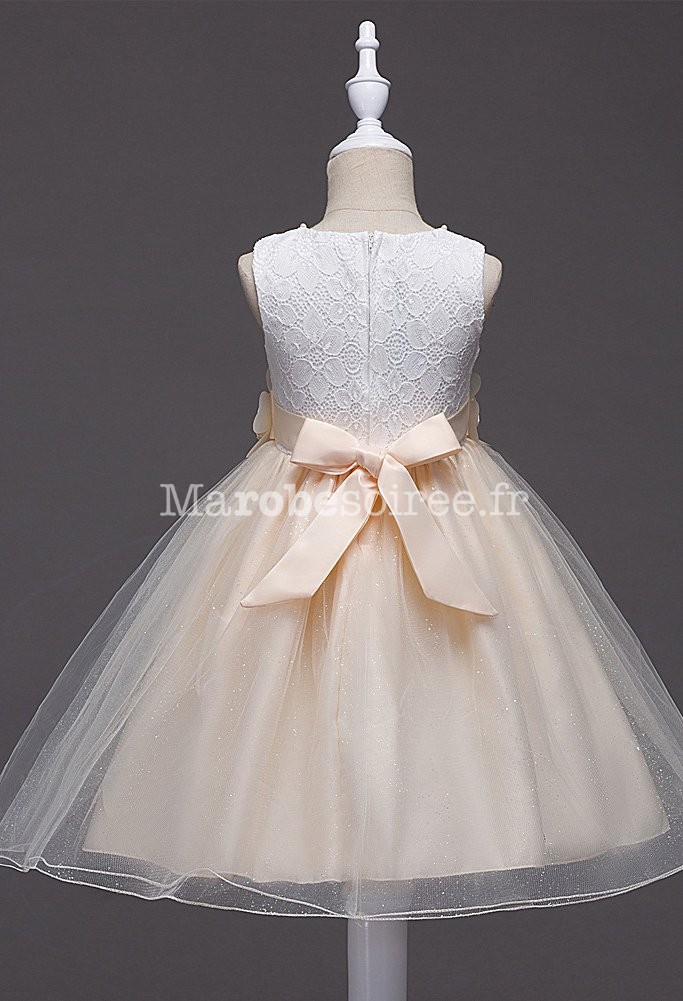 Très belle robe de cérémonie en dentelle avec une jupe en tulle pailleté.